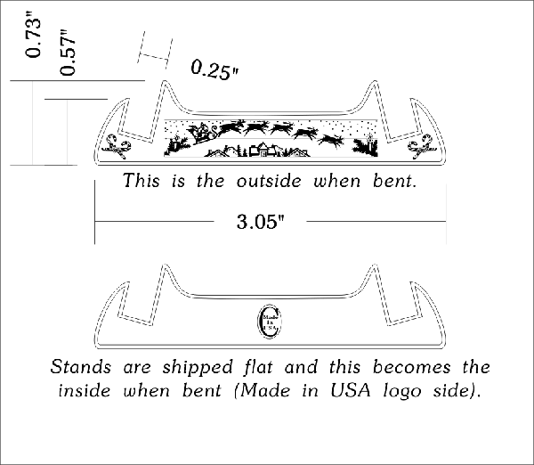 Gently bend until both ends are approximately 1.75" apart. A bottle cap or bottle neck works well for this. Bend the stand around the neck or similarly shaped object, pressing with both thumbs. Adjust the final width to match the medallion size. The Made in USA logo should be on the inside when finished. |